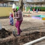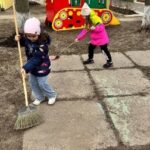 Территория была очищена от опавшей листвы, убрана сухая трава и камни, выметены игровые площадки и веранды, произведена посадка саженцев, побелены деревья, окопаны кустарники.
