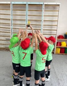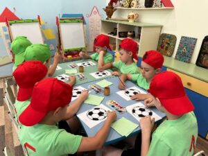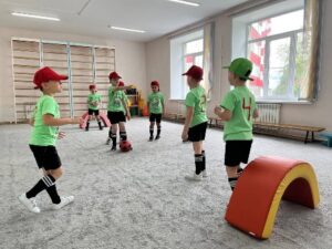 В рамках всемирного дня детского футбола, в нашем детском саду прошёл тематический день, посвящённый «Дню футбола». Воспитанники старшей группы «Ёжики» и «Ромашка» разделились на две команды и с помощью упражнений и футбольных эстафет смогли попробовать свои силы в этом виде спорта: ловко вели ногой мяч, преодолевали препятствия и забивали гол в ворота. Спортсмены команд проявили ловкость, быстроту реакции, спортивную выдержку, решительность и смелость. Игра в футбол, помимо оздоровительной задачи, объединяет детский коллектив, воспитывает товарищеские взаимоотношения, чувство ответственности за себя и свою команду. И кто знает, может быть из нашего детского сада выйдут будущие известные футболисты!
